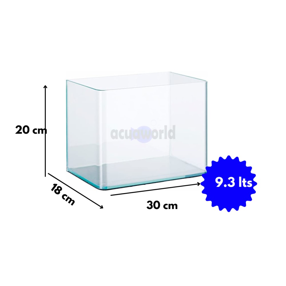 Pecera Tray Aqua, de 9,3 litros de 30 cm de largo, 20 cm de alto y 18 cm de ancho en vidrio de 4mm.